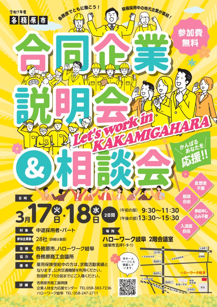 2026年3月17日(火) 各務原市合同企業説明会&相談会に参加いたします!